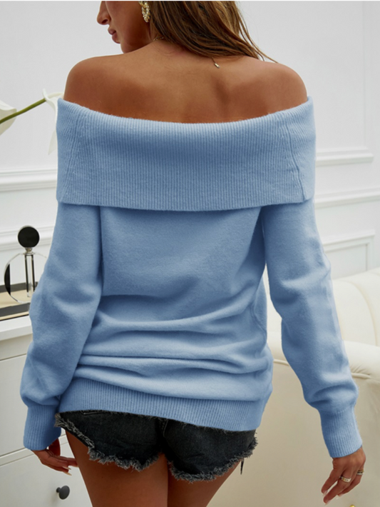 Off Shoulder Solid Knitted Loose Pullover Sweater