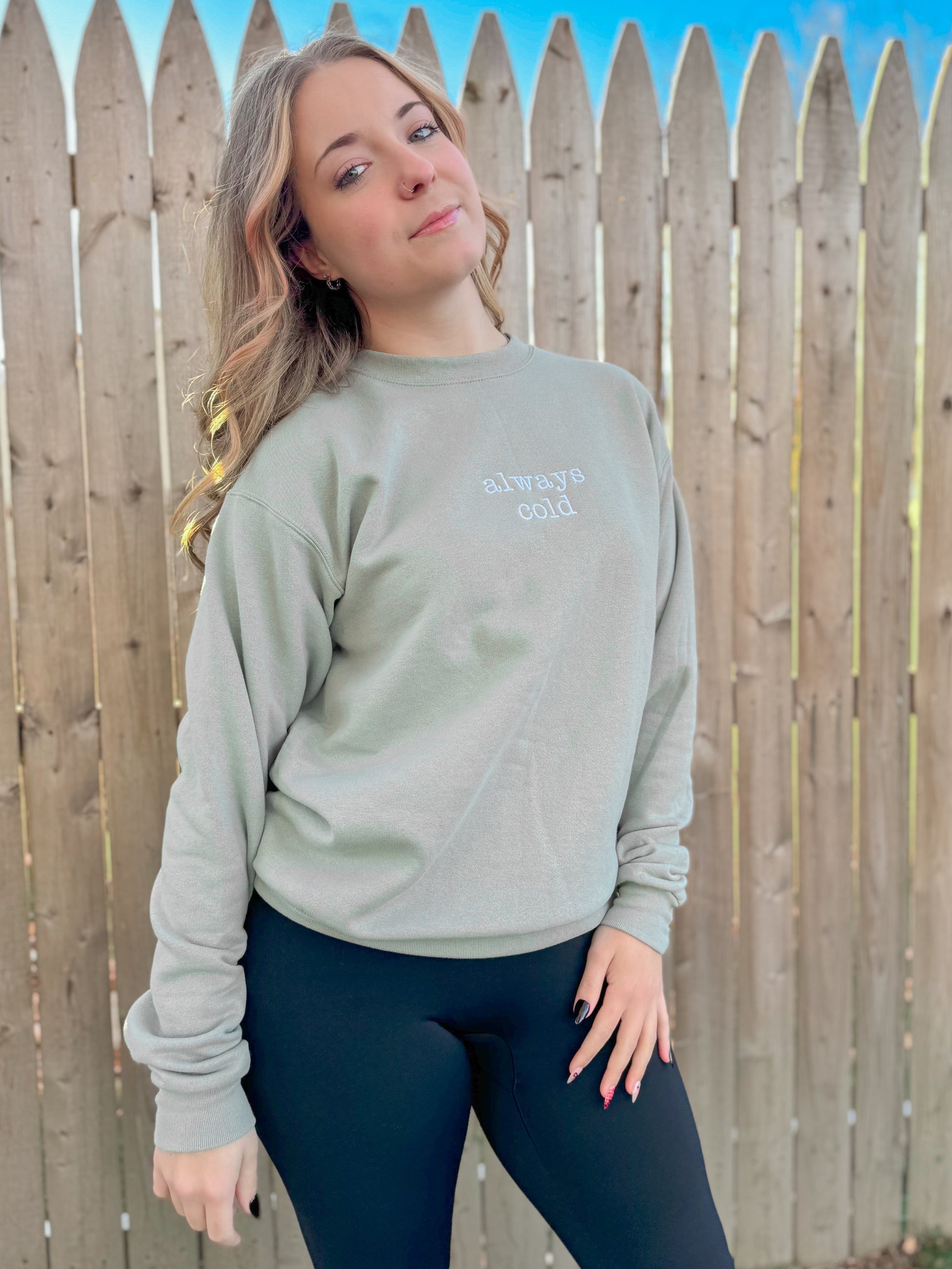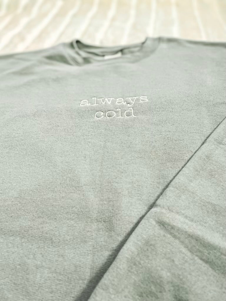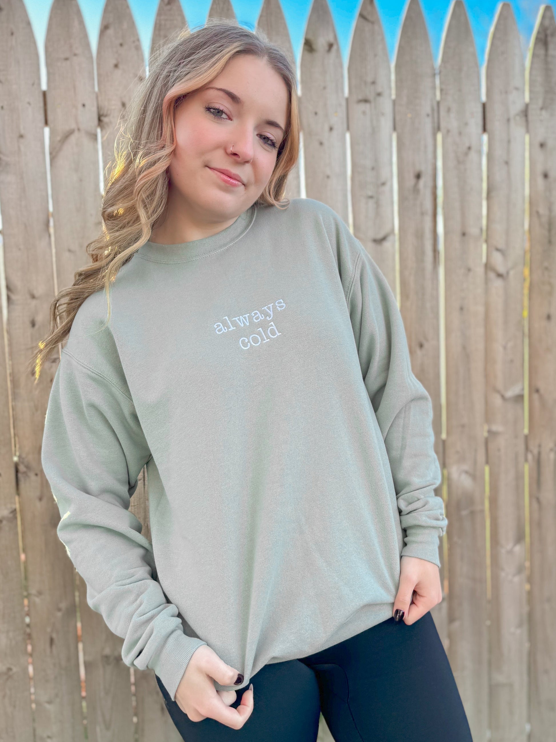 Stay chill all day in this Always Cold embroidered Sweatshirt! Crafted from soft and cozy fabric, this snuggly staple will keep you warm and toasty, no matter how cold it gets outside. Plus, the sassy embroidery will have you looking stylish and on-trend. So cold you might even turn Sisqó!